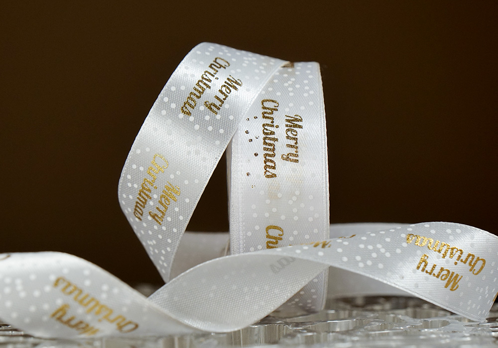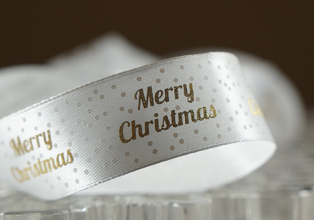 Атласна новорічна стрічка Merry Christmas-3 білий (2,5 см *23 м)(1рулон)