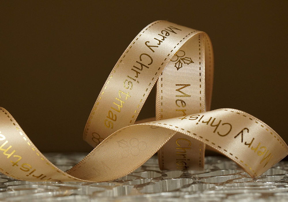 • Атласна новорічна стрічка Merry Christmas світло-коричневий (2,5 см *23 м)