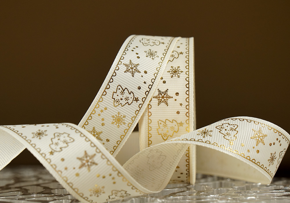 Репсова новорічна стрічка "Ялинка" молочний (2,5 см *23 м) (1рулон)
