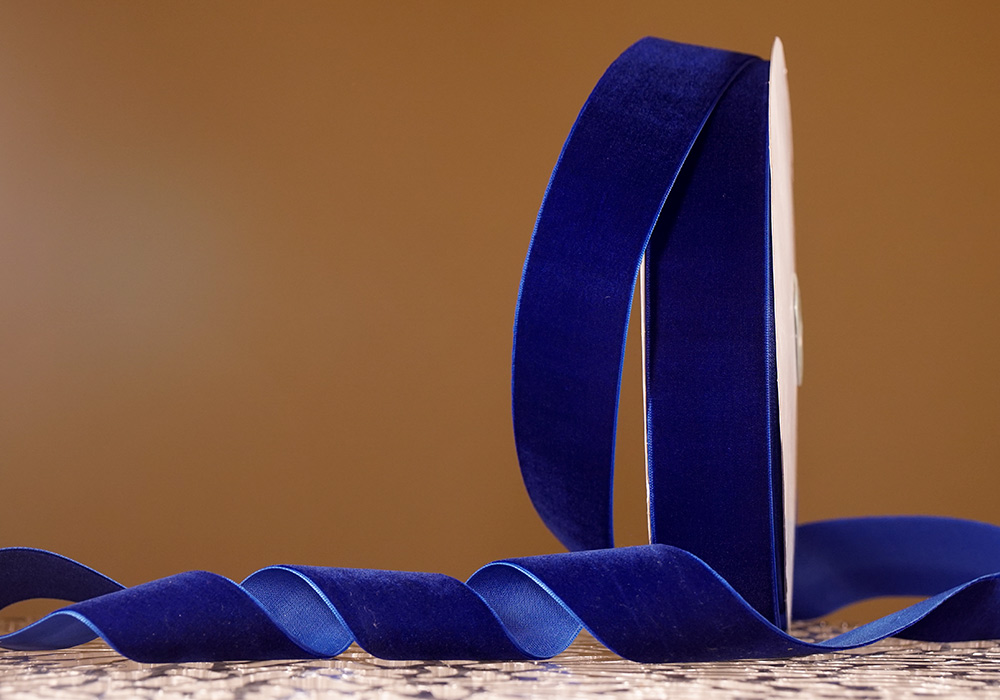 Стрічка оксамитова (велюр) 4,0 см, синій (№47) (1 рулон) (27м)