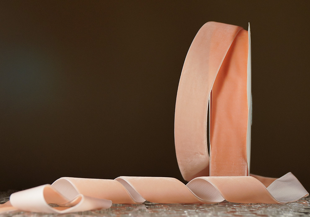 Стрічка оксамитова (велюр) 4,0 см, персиковий (№C09) (1 рулон) (27м)