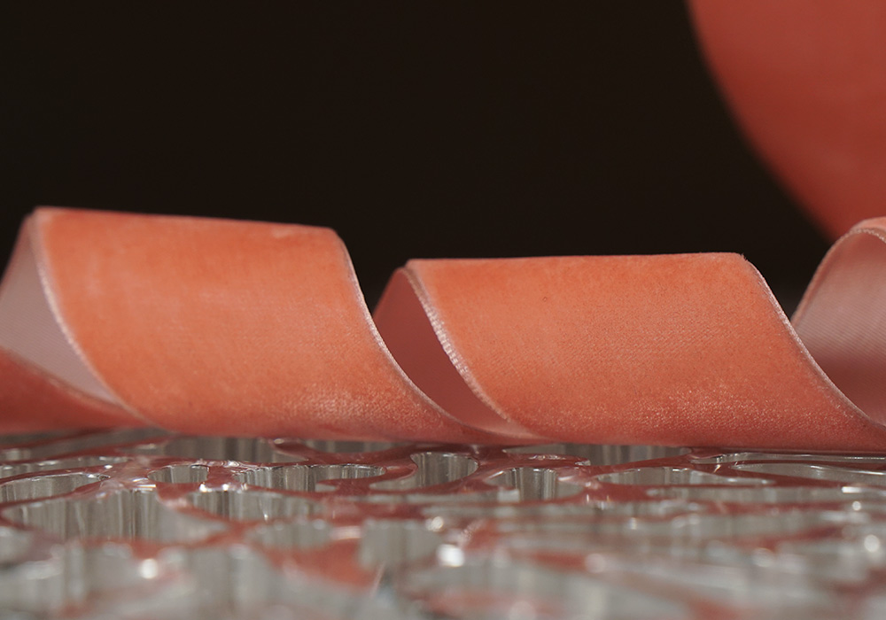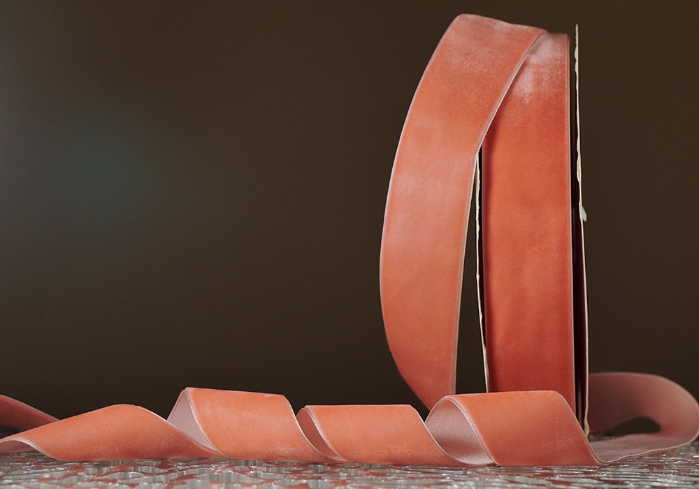 Стрічка оксамитова (велюр) 4,0 см, рожево-персиковий (№C11) (1 рулон) (27м)