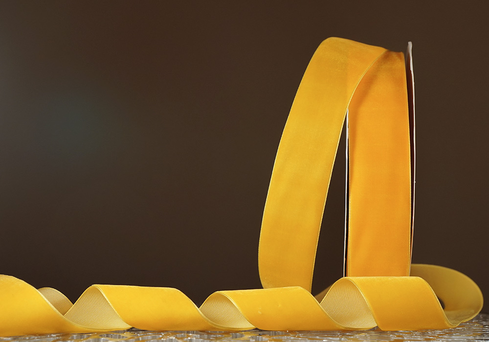 Стрічка оксамитова (велюр) 4,0 см, жовтий (№C13) (1 рулон) (27м)