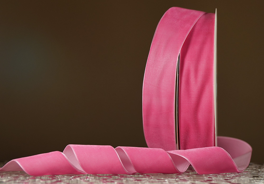 Стрічка оксамитова (велюр) 4,0 см, рожевий (фукусія) (№C19) (1 рулон) (27м)