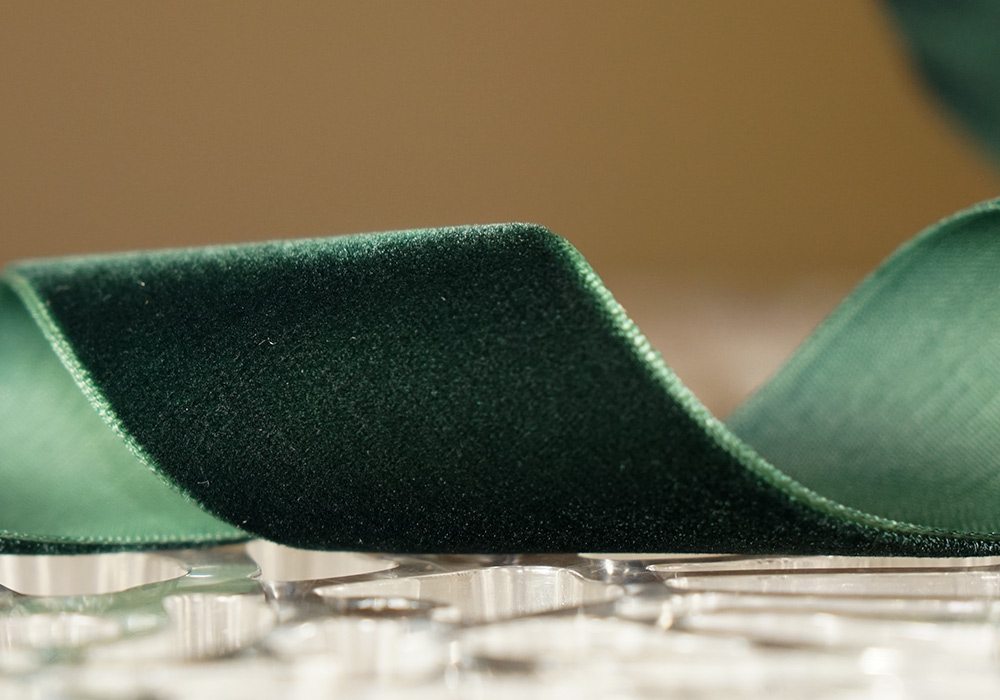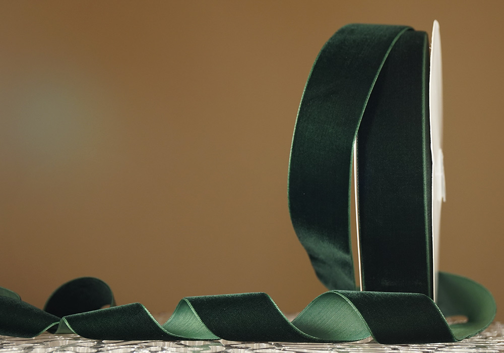 Стрічка оксамитова (велюр) 4,0 см, зелений (№C59) (1 рулон) (27м)