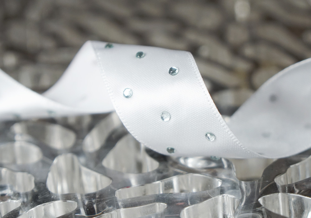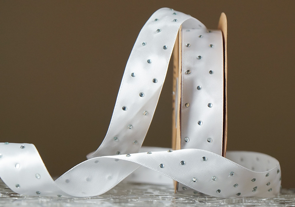 Атласна стрічка зі стразами (2,5 см *18,5 м), білий (№001) (1рулон)