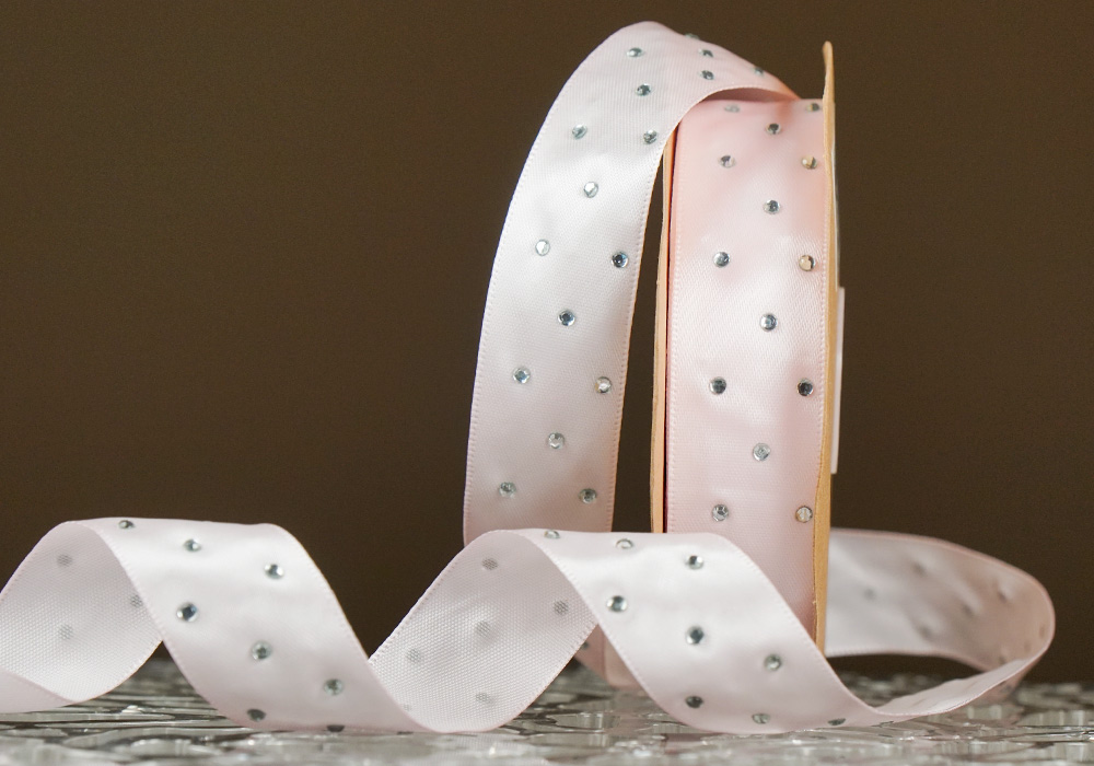 Атласна стрічка зі стразами (2,5 см *18,5 м), світло-рожевий(№010) (1рулон)