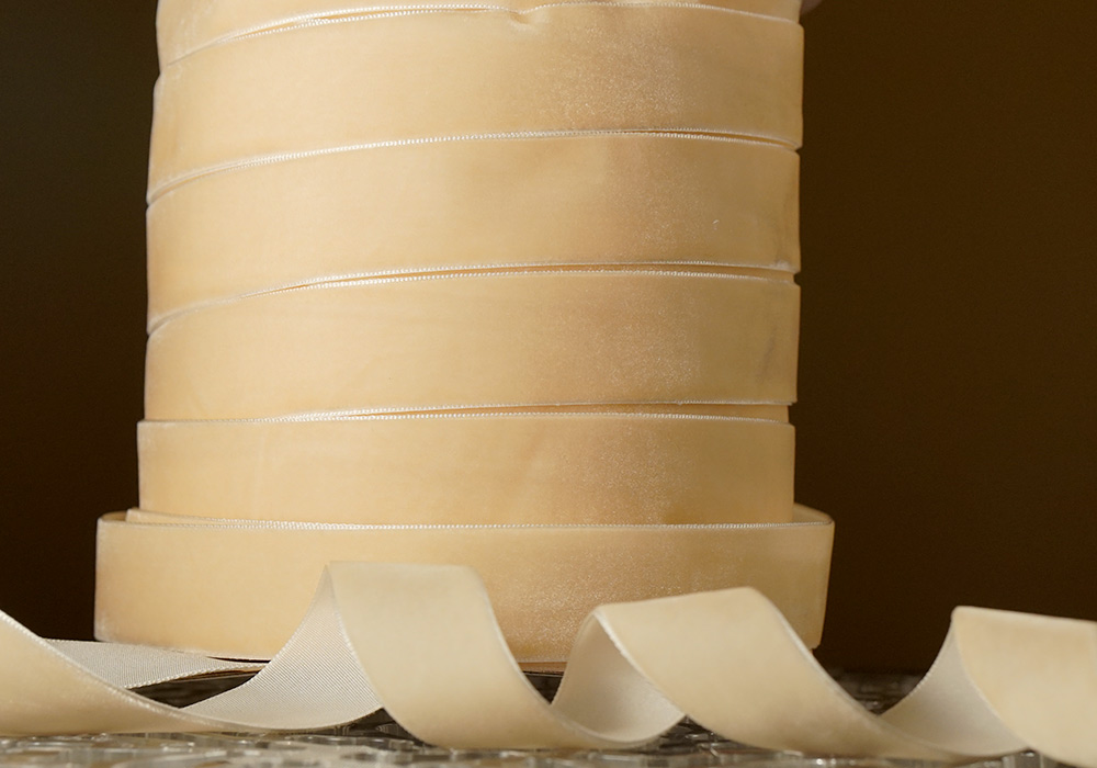 Стрічка оксамитова (велюр) 2,5 см, кремовий (№01) (1 рулон) (45м)