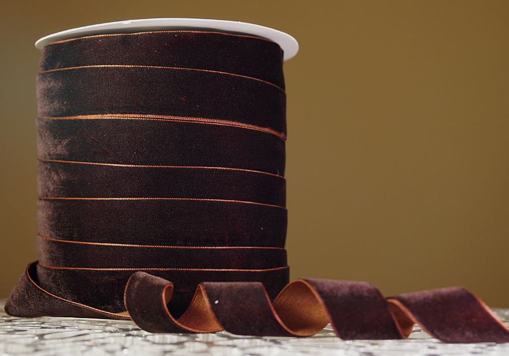 Стрічка оксамитова (велюр) 2,5 см, коричневий (№22) (1 рулон) (45м)