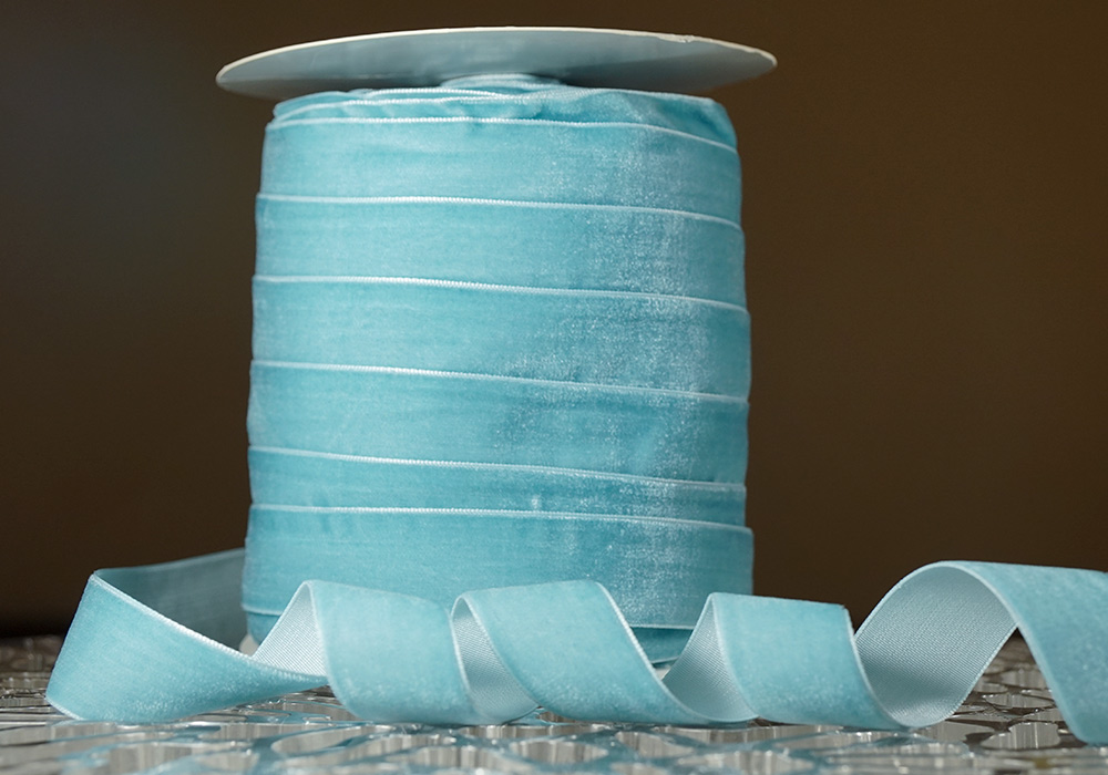 Стрічка оксамитова (велюр) 2,5 см, тіфані (№30) (1 рулон) (45м)