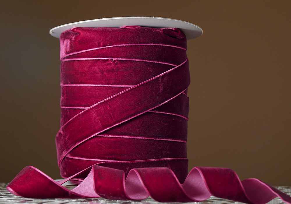 Стрічка оксамитова (велюр) 2,5 см, вишневий (№36) (1 рулон) (45м)