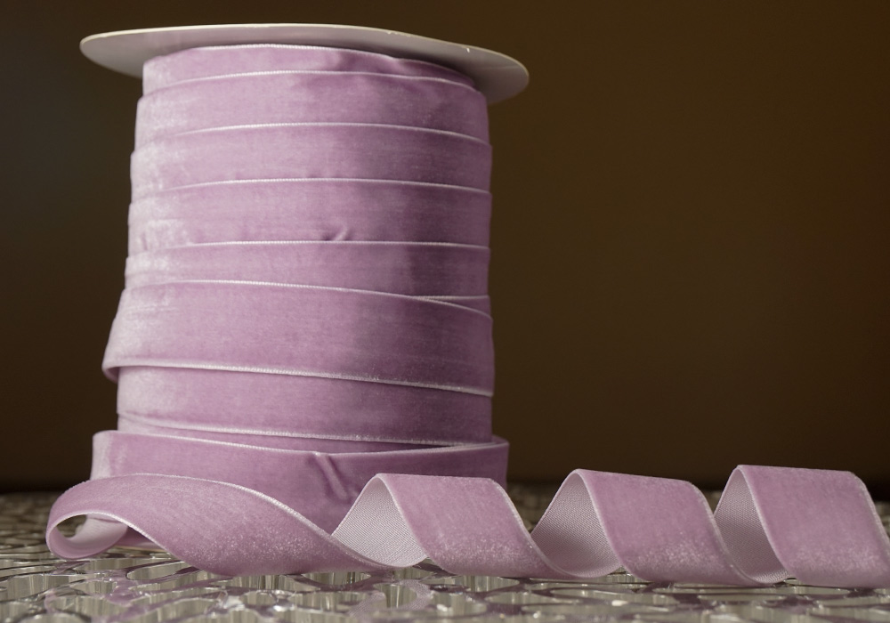 Стрічка оксамитова (велюр) 2,5 см, світло-бузковий (№40) (1 рулон) (45м)