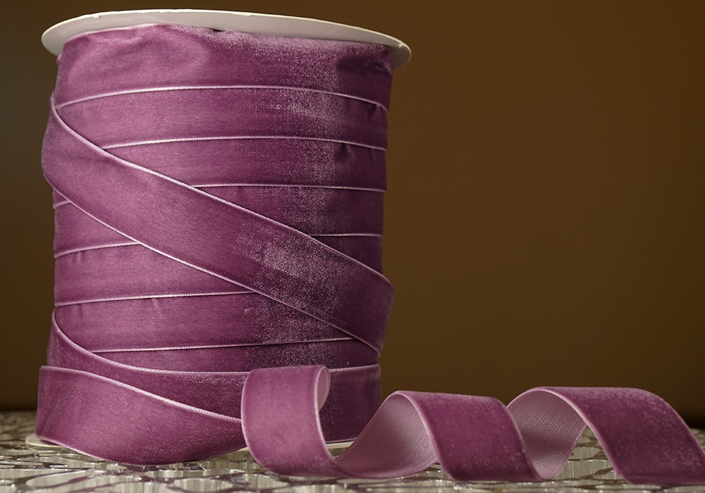 Стрічка оксамитова (велюр) 2,5 см, бузковий (№41) (1 рулон) (45м)