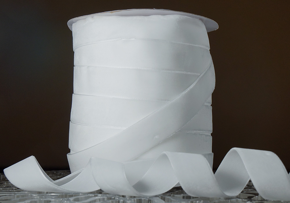 Стрічка оксамитова (велюр) 2,5 см, білий (№C01) (1 рулон) (45м)