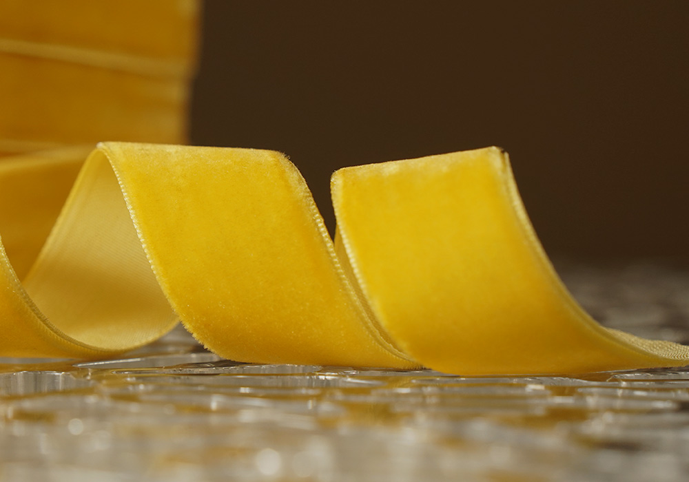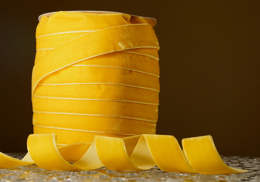 Стрічка оксамитова (велюр) 2,5 см, жовтий (№C13) (1 рулон) (45м)