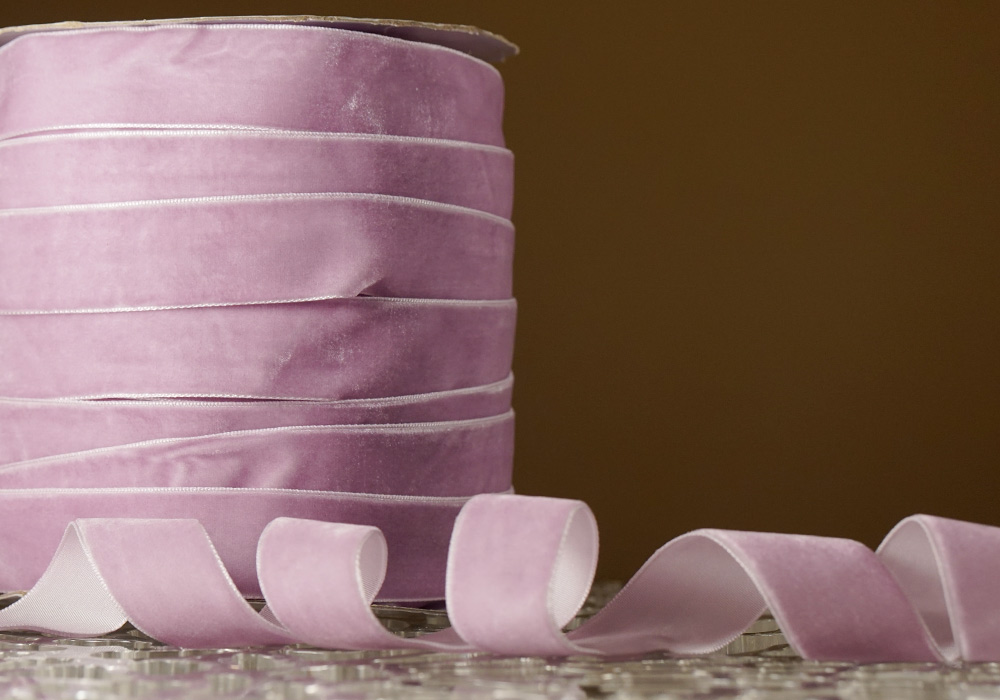 Стрічка оксамитова (велюр) 2,5 см, блідо-бузковий (№C38) (1 рулон) (45м)