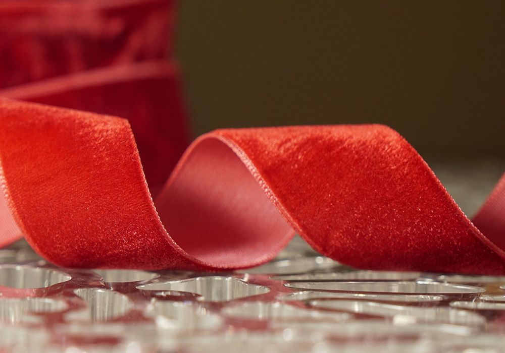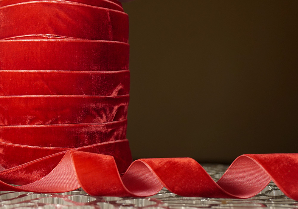 Стрічка оксамитова (велюр) 2,5 см, червоний (гарячий) (№C53) (1 рулон) (45м)