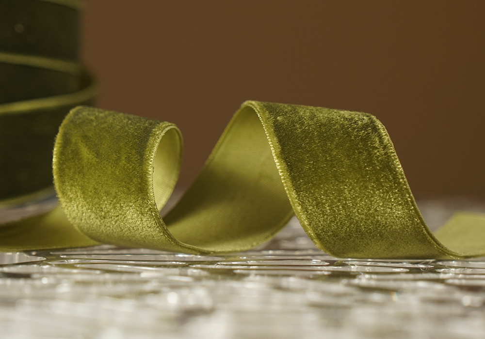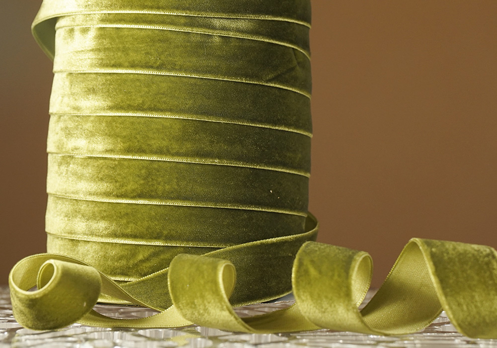 Стрічка оксамитова (велюр) 2,5 см, жовто-зелений (№C56) (1 рулон) (45м)