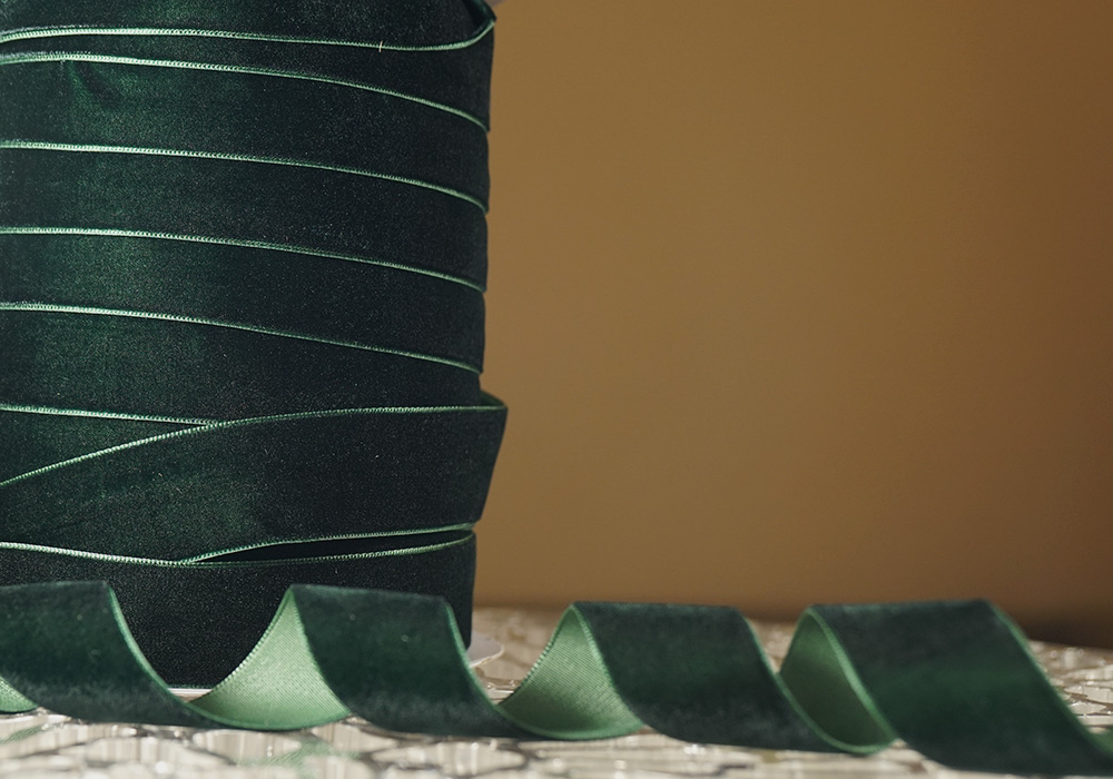 Стрічка оксамитова (велюр) 2,5 см, зелений (№C59) (1 рулон) (45м)