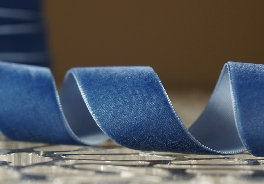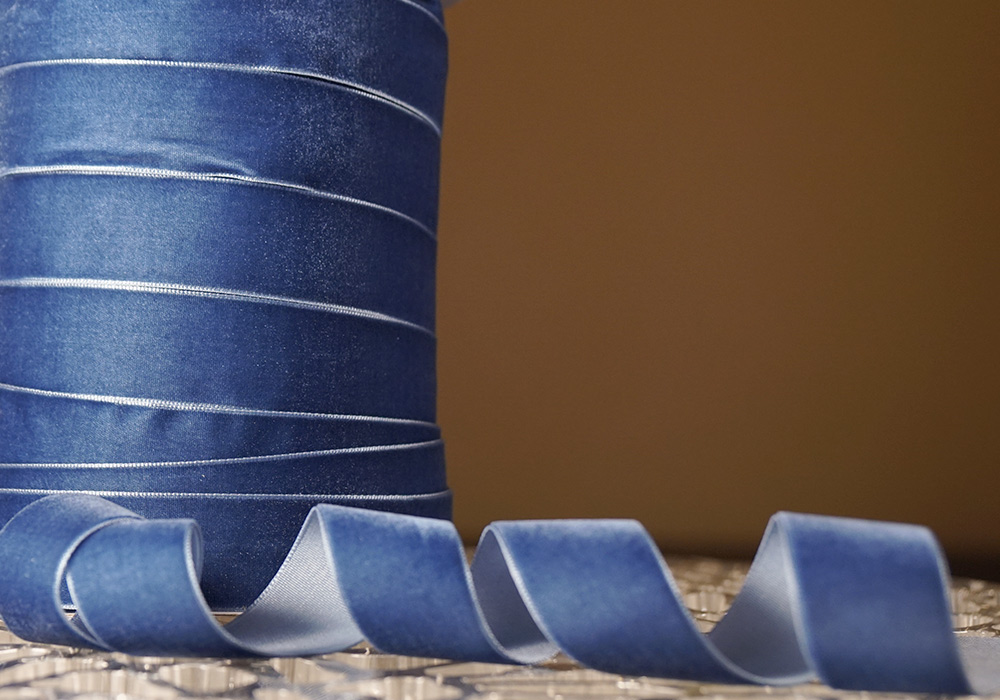Стрічка оксамитова (велюр) 2,5 см, синій (№C67) (1 рулон) (45м)
