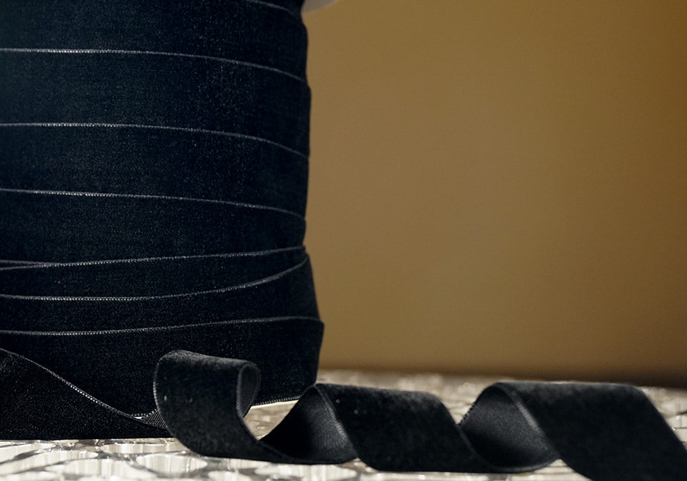 Стрічка оксамитова (велюр) 2,5 см, чорний (№300) (1 рулон) (45м)