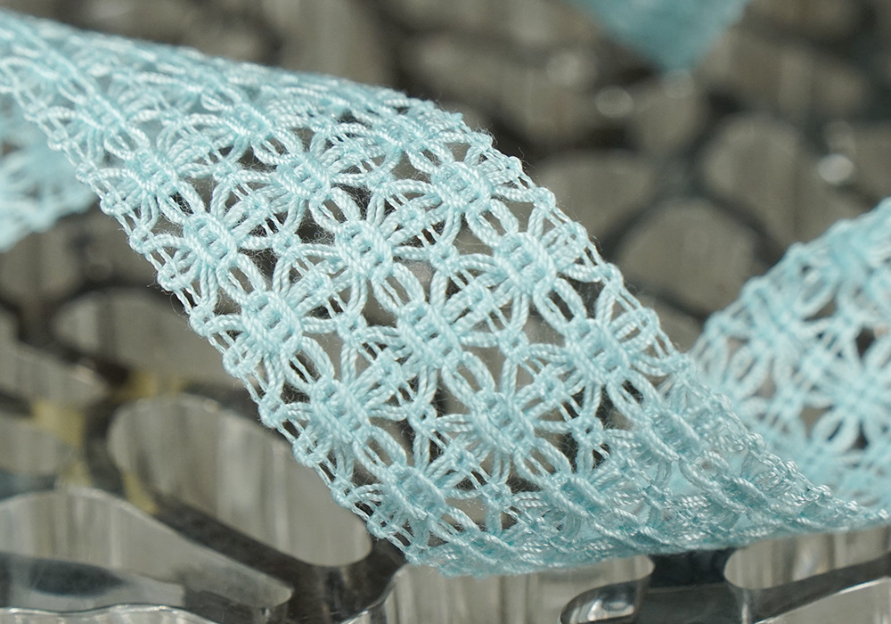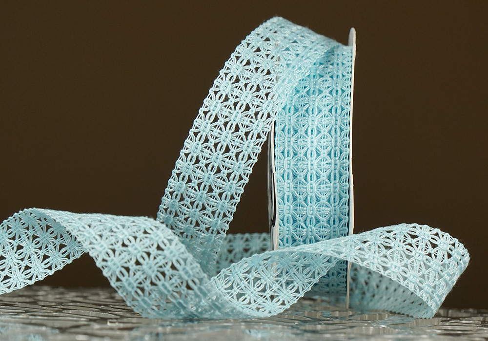 Стрічка макраме в'язана блакитний (№131) (2,5 см *11,5 м) (1рулон)