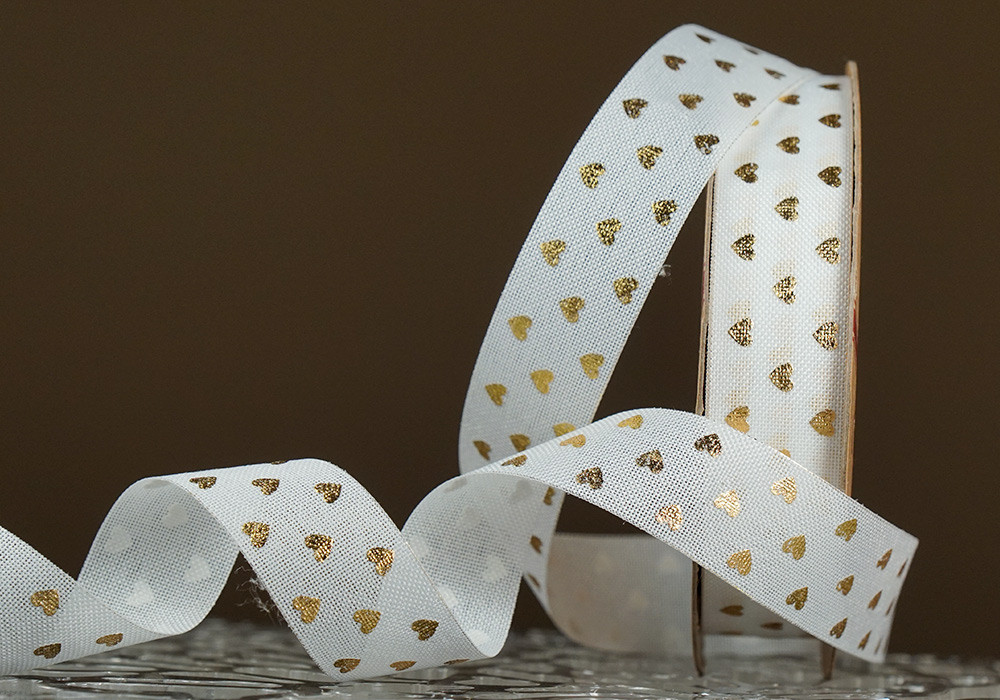 Стрічка з мішковини принт "Серце" (2,5 см *9 м), білий (1рулон)