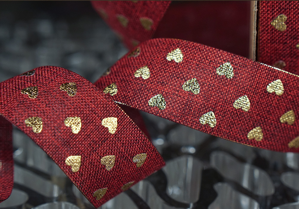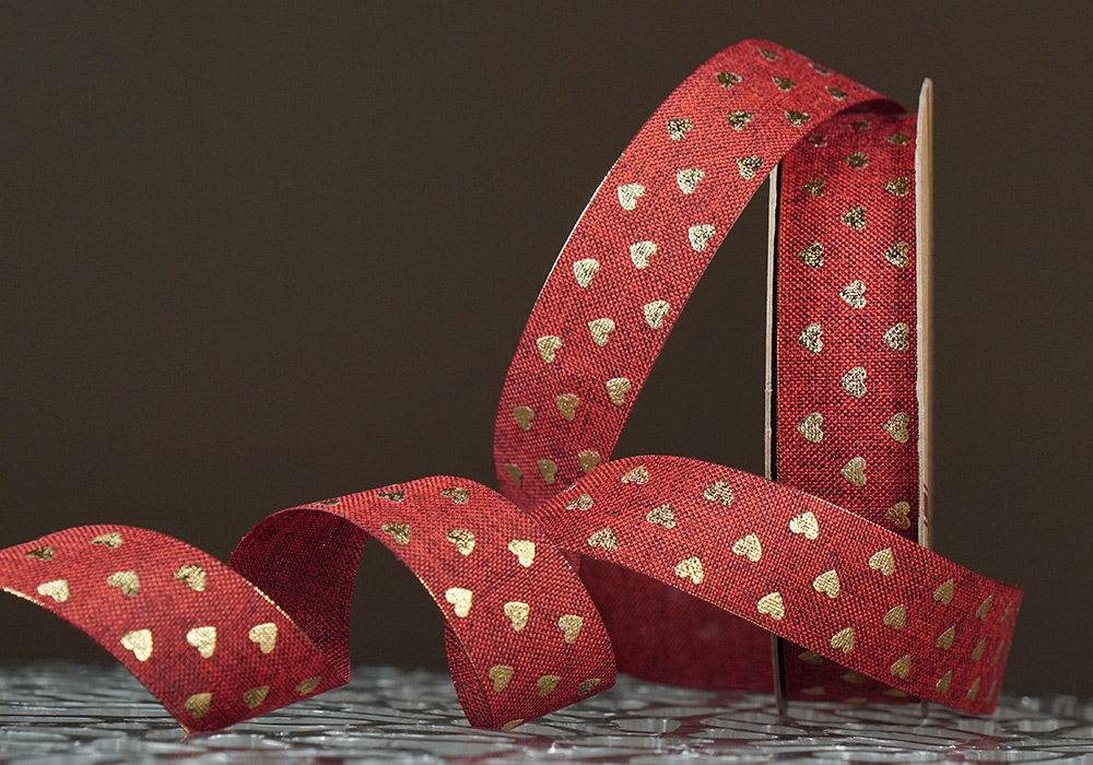 Стрічка з мішковини принт "Серце" (2,5 см *9 м), бордовий (1рулон)
