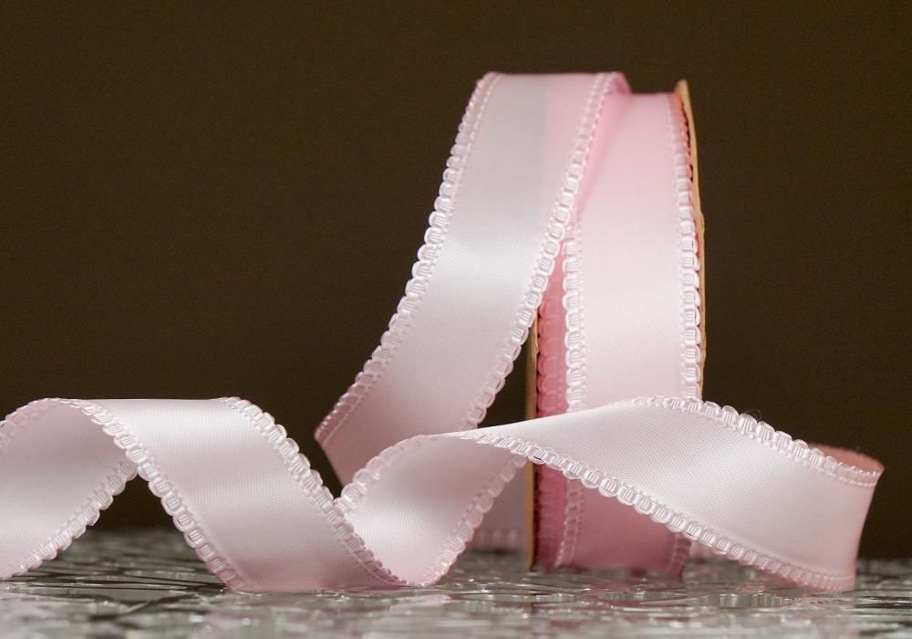Стрічка двостороння атласна з ажурним кантом (2,5 см *18,5 м), рожевий (№123) (1рулон)