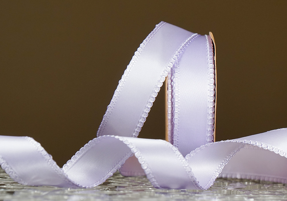 • Стрічка двостороння атласна з ажурним кантом (2,5 см *18,5 м), бузковий (№430) (1рулон)