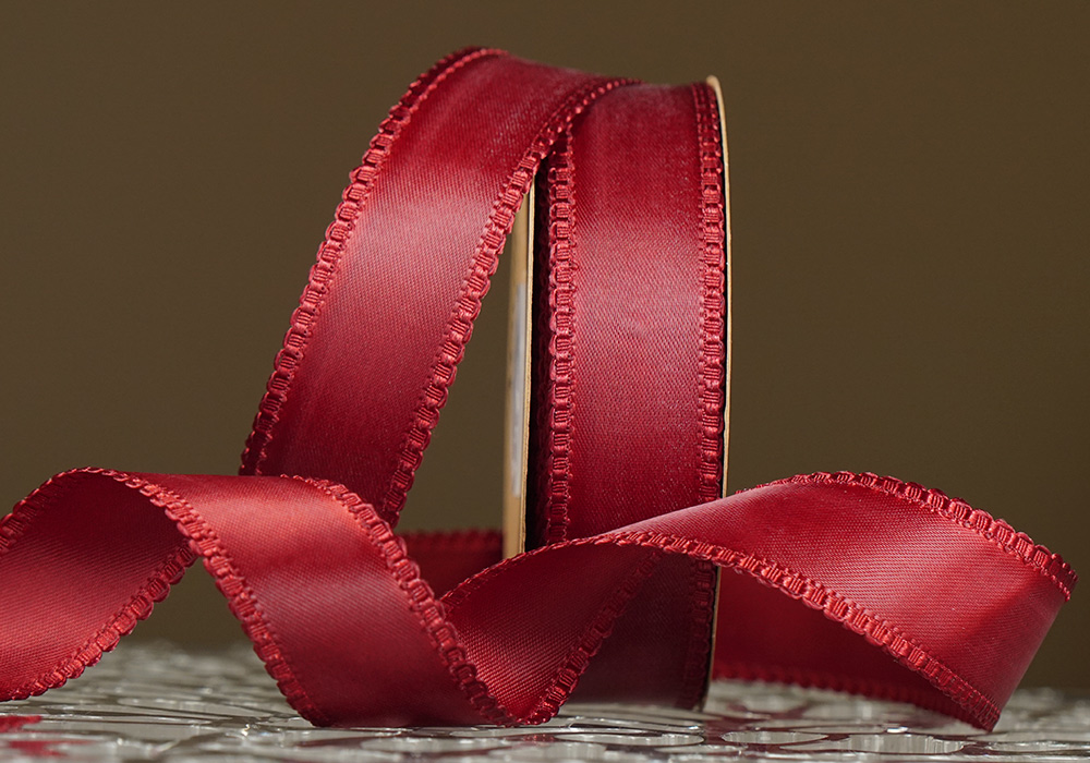 Стрічка двостороння атласна з ажурним кантом (2,5 см *18,5 м), бордовий (№789) (1рулон)