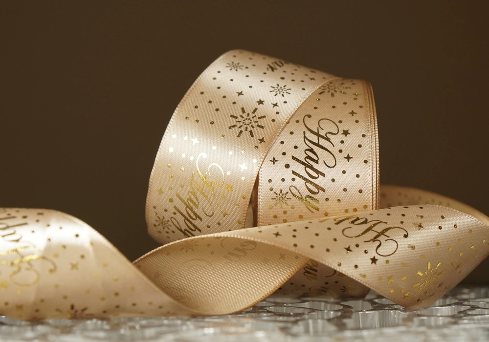 Атласні стрічки з новорічним, різдвяним принтом