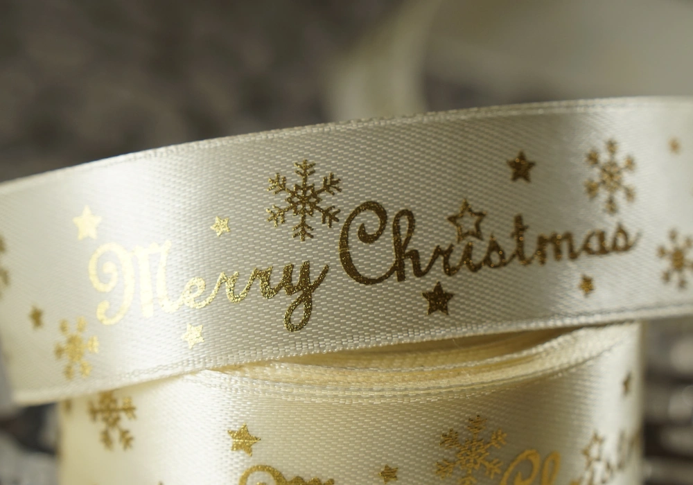 Атласні стрічки з новорічним, різдвяним принтом