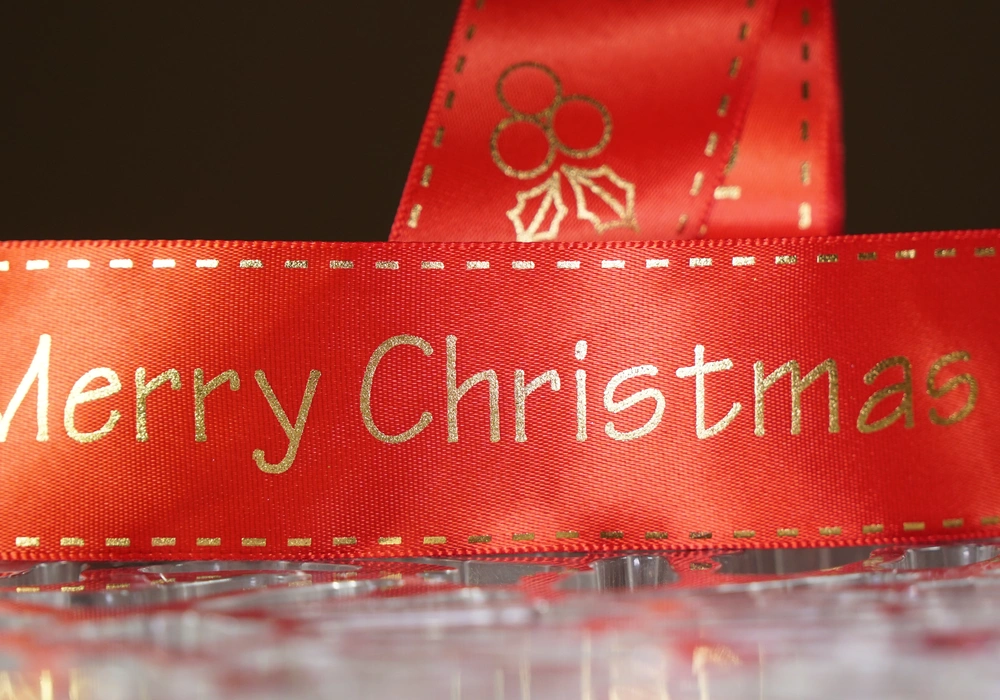 Атласні стрічки з новорічним, різдвяним принтом