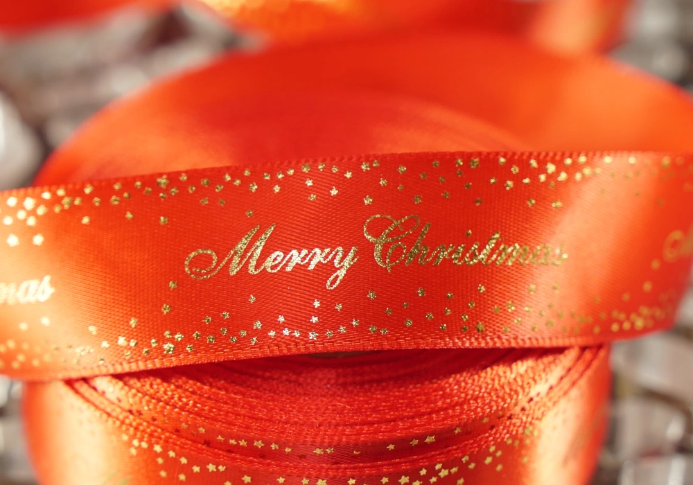 Атласні стрічки з новорічним, різдвяним принтом