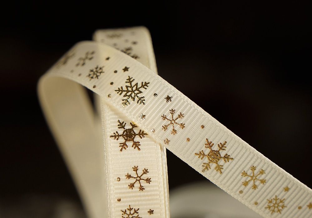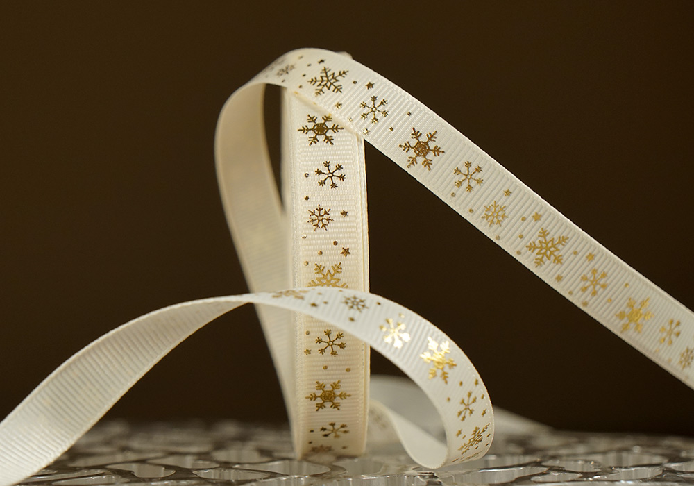 Репсова новорічна стрічка "Сніжинки" молочний (1,2 см *23 м) (1рулон)