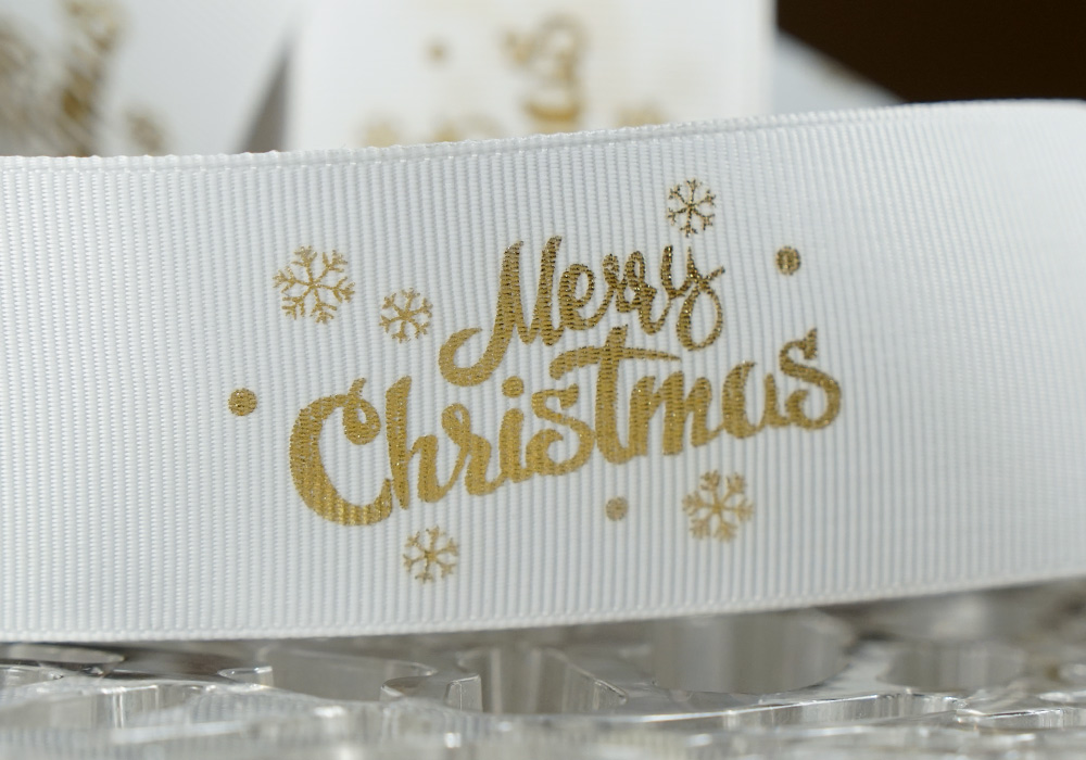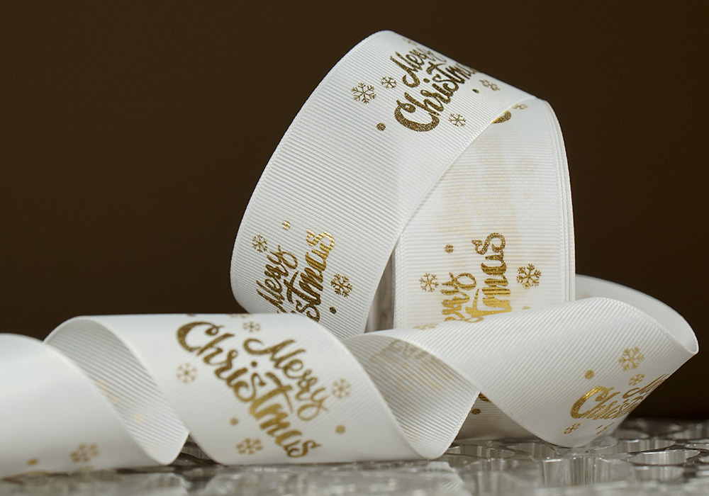 Репсова новорічна стрічка "Merry Christmas-2" білий (4,0 см *23 м) (1рулон)