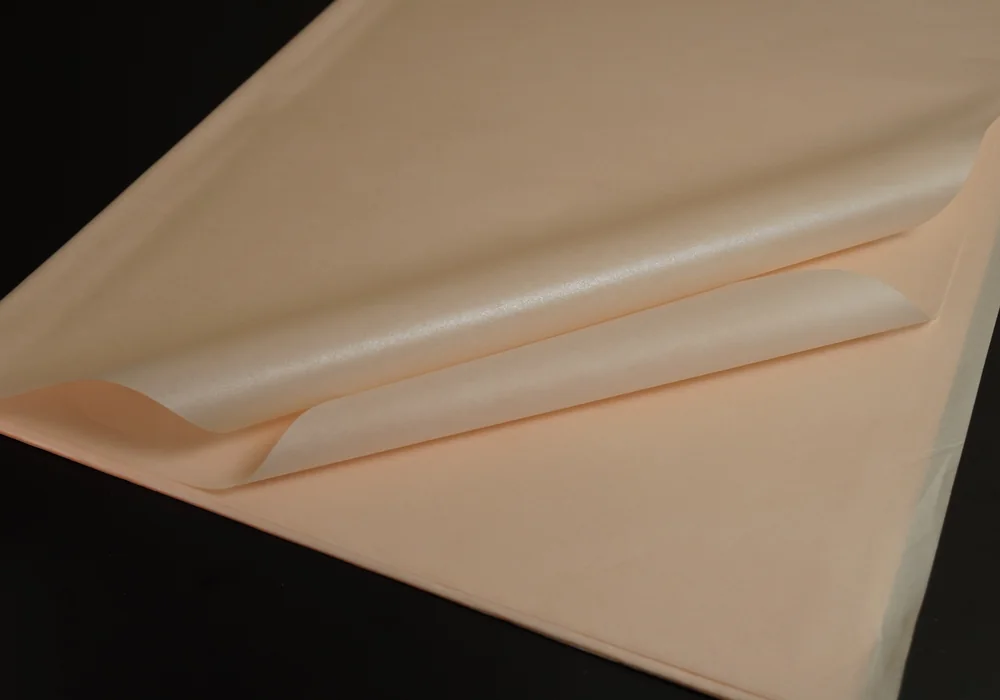 Персиковий папір тіш’ю з перламутровим ефектом допоможе створити ніжний, стильний та ефектний декор для будь-якого свята або творчого проєкту.