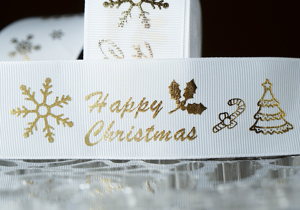 Репсові стрічки з принтом "Happy Christmas" 4.0 см