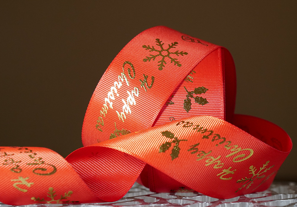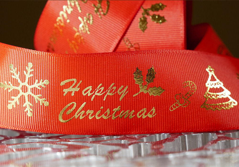 Репсові стрічки з принтом "Happy Christmas" 4.0 см
