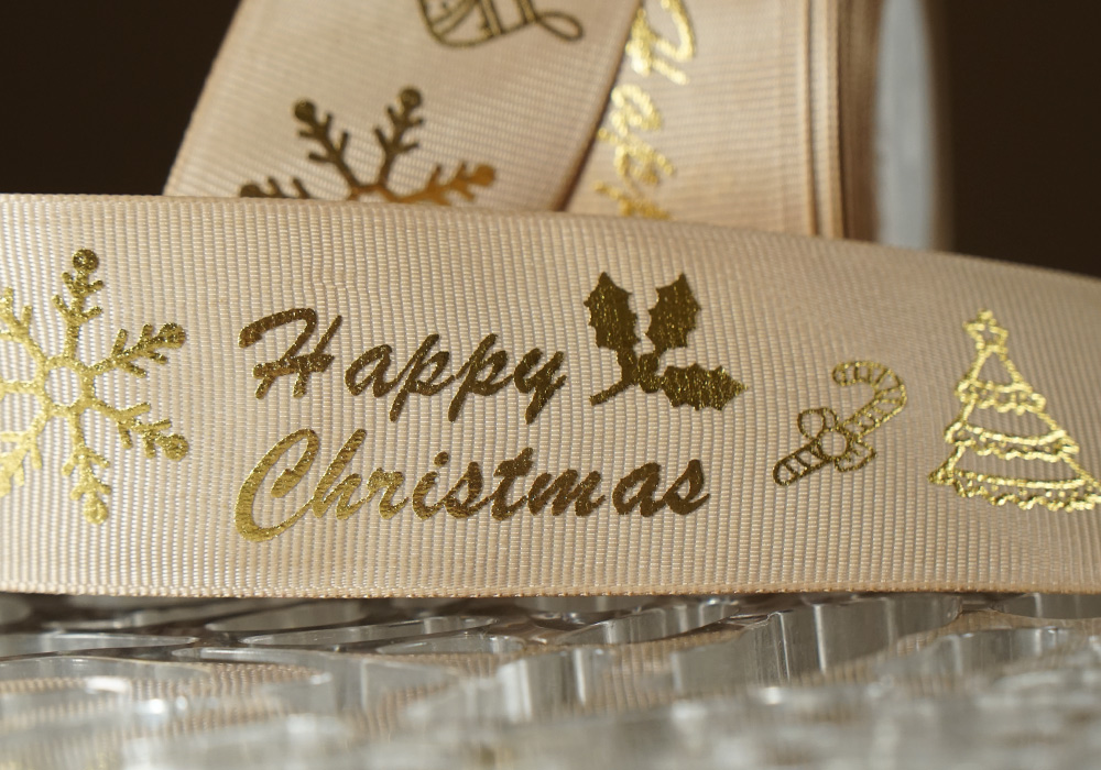 Репсові стрічки з принтом "Happy Christmas" 4.0 см