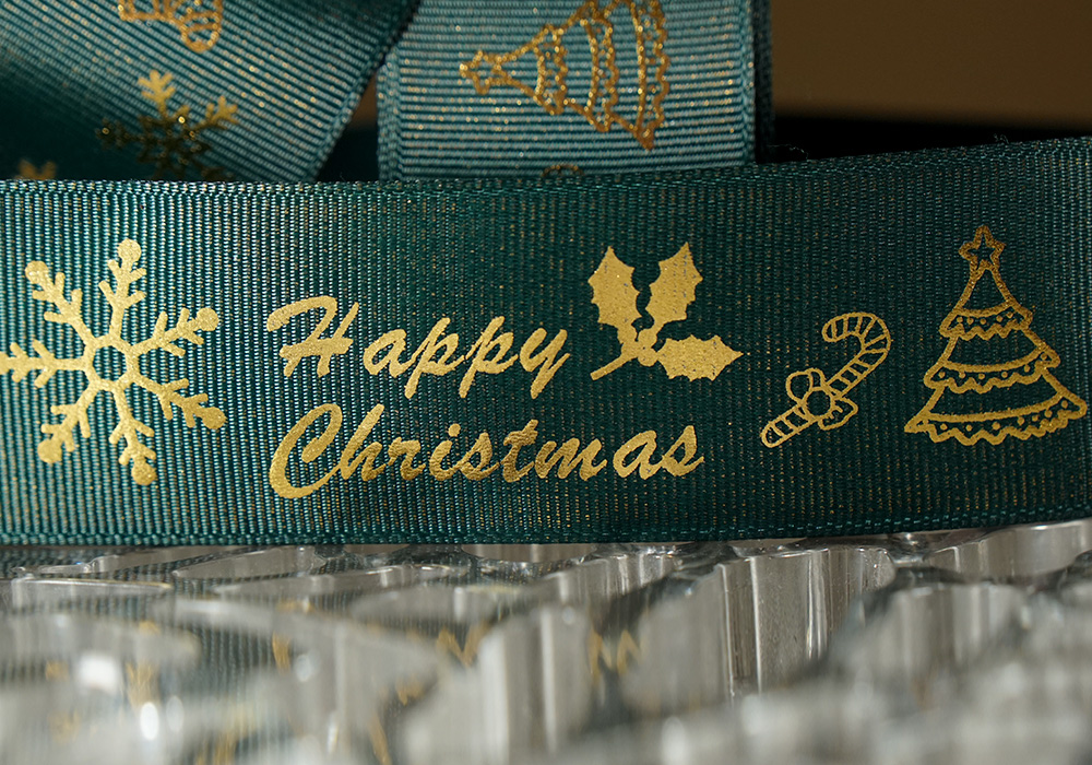 Репсові стрічки з принтом "Happy Christmas" 4.0 см
