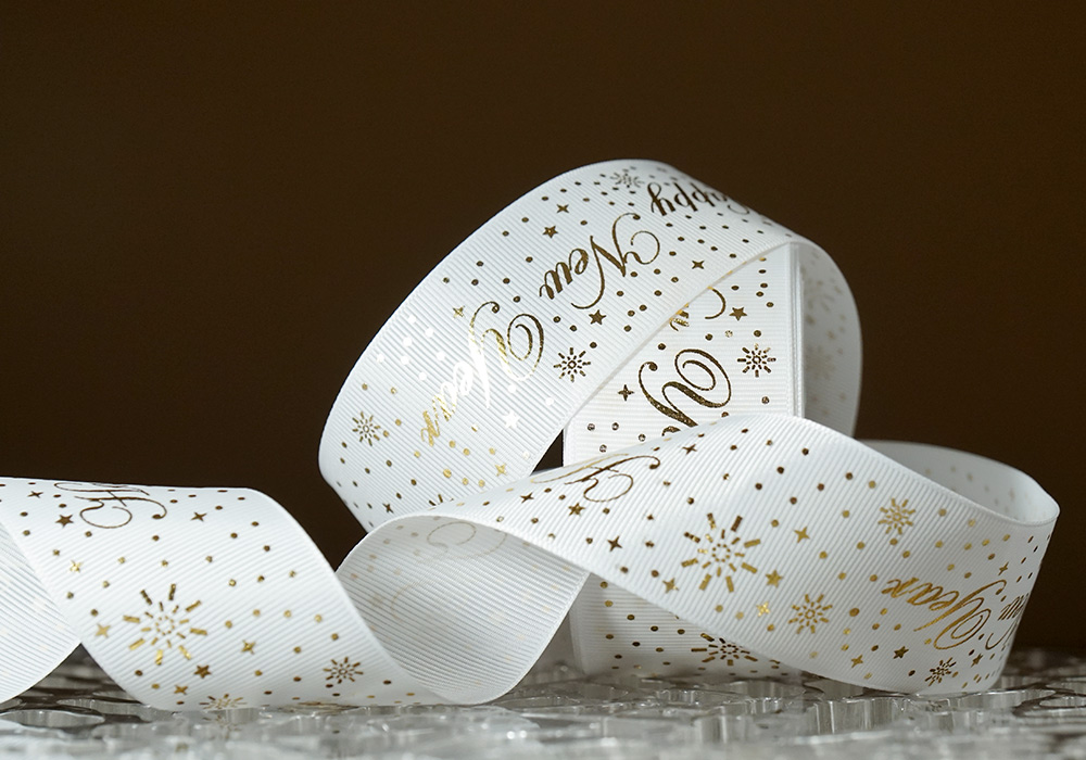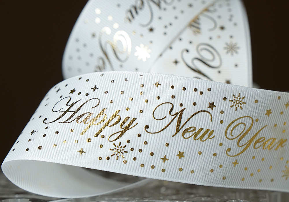 Репсові стрічки з принтом "Happy New Year" 4.0 см