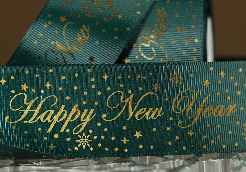Репсові стрічки з принтом "Happy New Year" 4.0 см