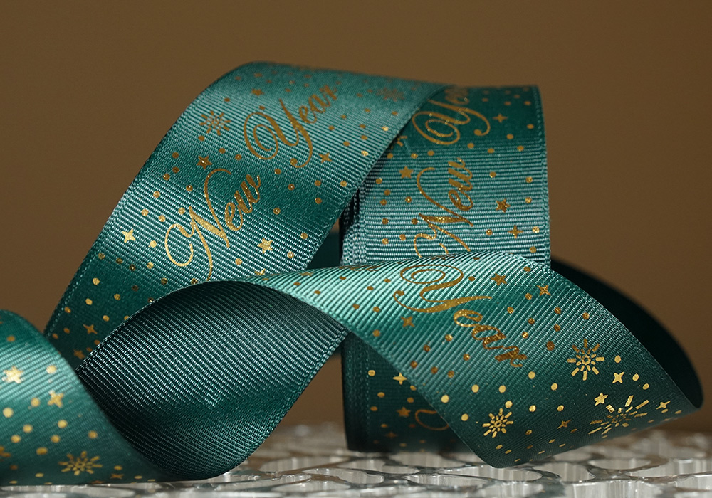Репсова новорічна стрічка "Happy New Year" зелений (4,0 см *23 м) (1рулон)