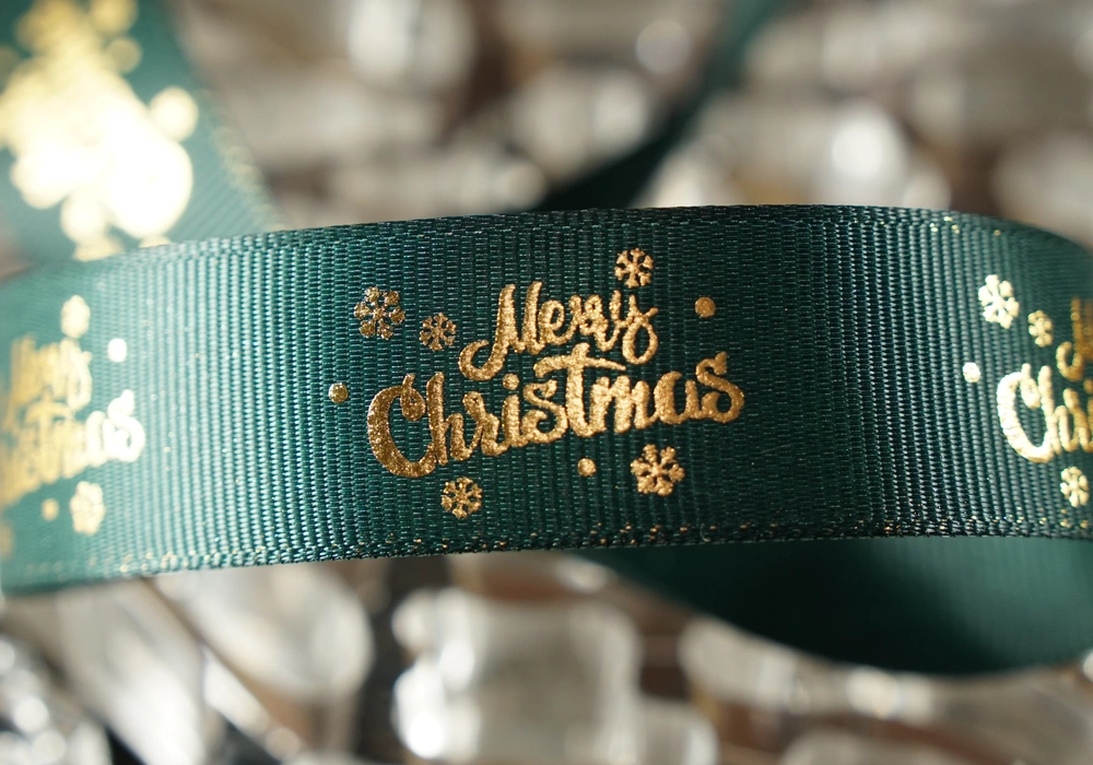 Репсова новорічна стрічка "Merry Christmas-2" зелена (2,5 см *23 м)(1рулон)
