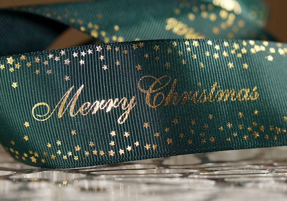 Репсова новорічна стрічка "Merry Christmas-3" зелений (4,0 см *23 м) (1рулон)