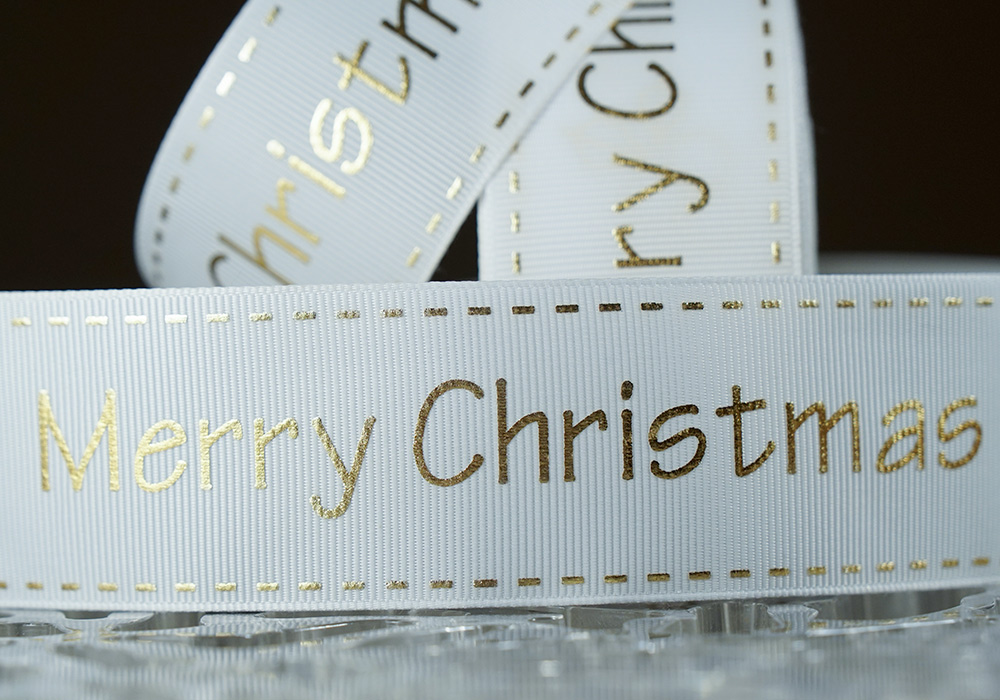 Репсова новорічна стрічка "Merry Christmas" білий (4,0 см *23 м) (1рулон)