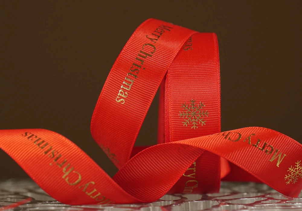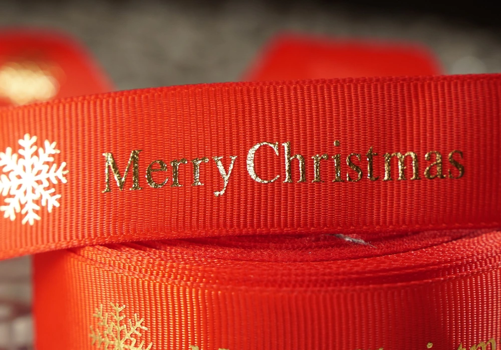 Репсова новорічна стрічка "Merry Christmas" Сніжинка червона (2,5 см *23 м)(1рулон)