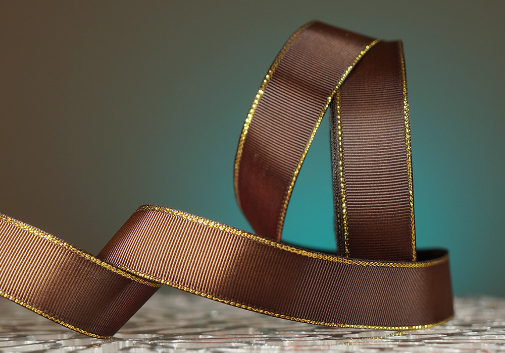 Репсова стрічка з люрексом, коричневий (№850) (2,5 см *23 м) (1 рулон)